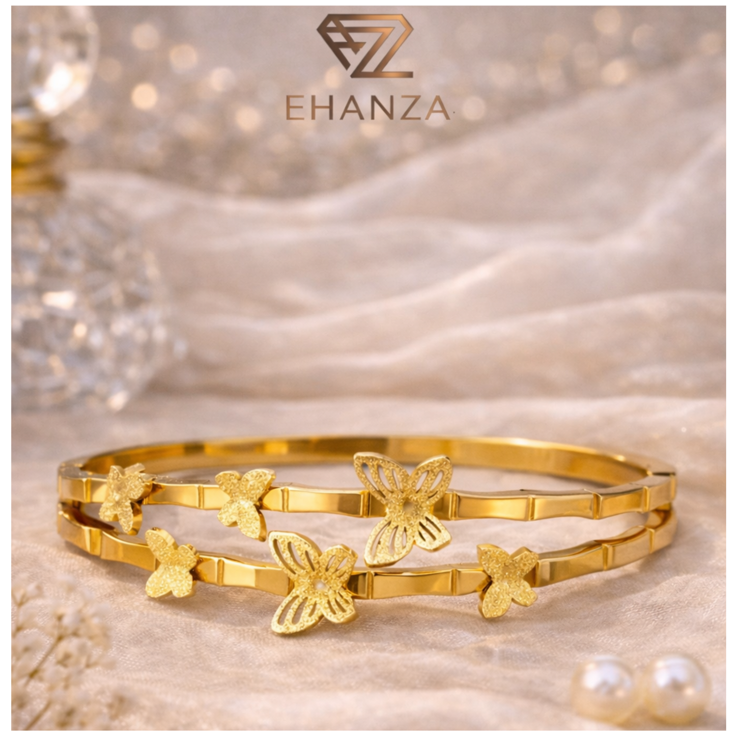 Ehanza Golden Flutter Butterfly Bangle(Adjustable)